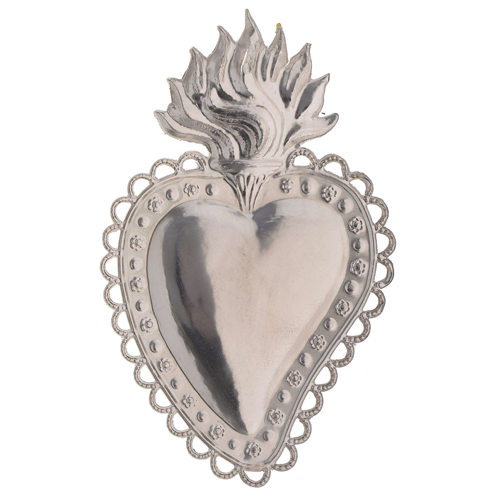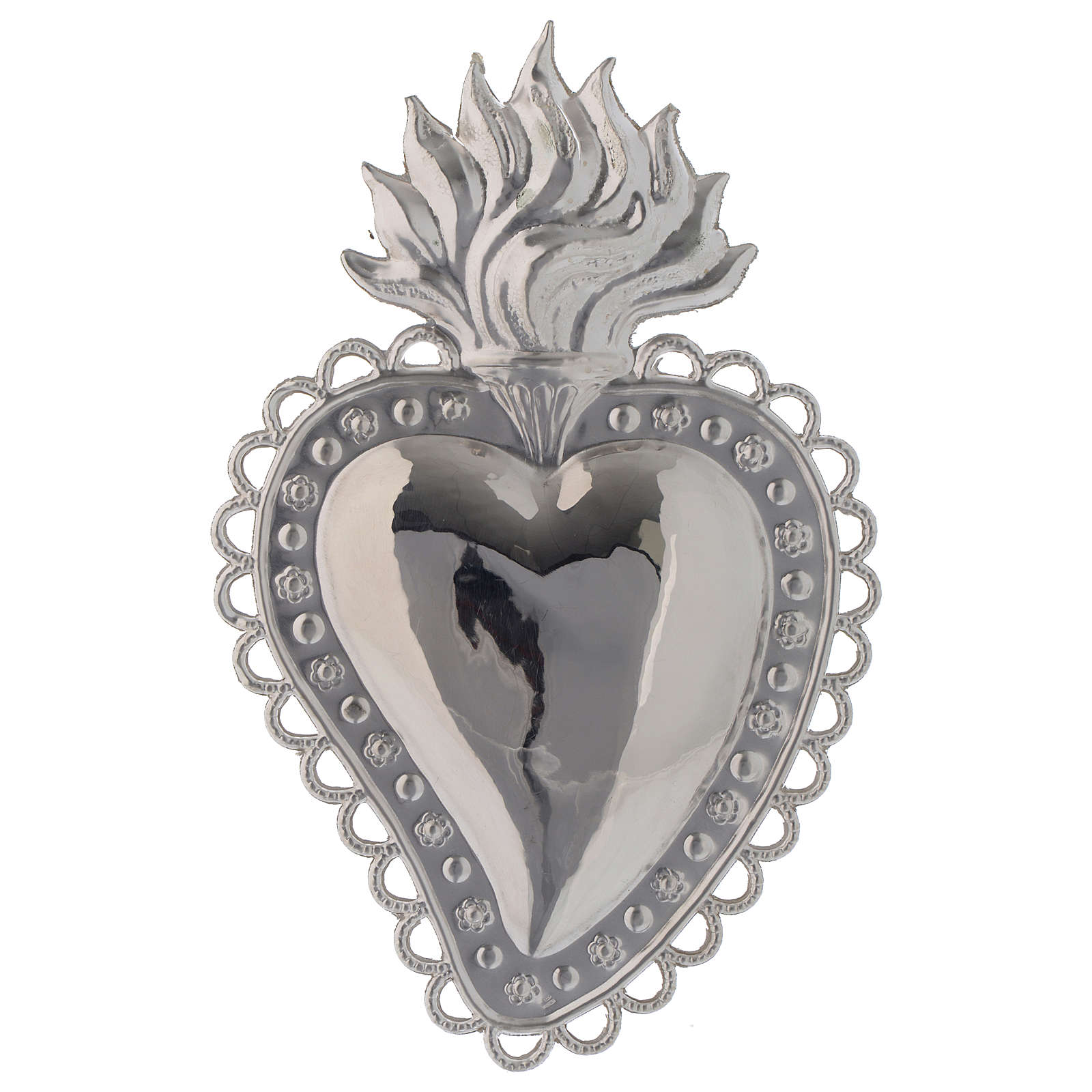 Votivgabe flammendes Herz mit floralem Dekor 16x10 cm