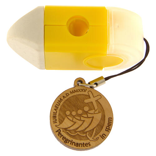 Jubiläum-Anspitzer mit Radiergummi und Olivenholz-Anhänger Klarissenkloster Albano Laziale