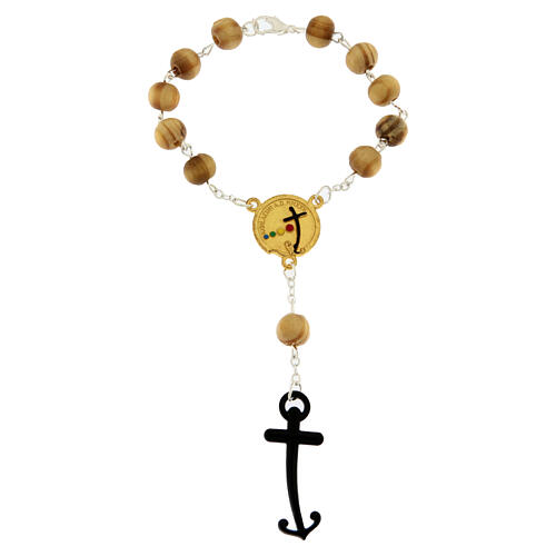 Jubiläums-Perlen-Decade aus Olivenholz mit goldenem Kreuzanker.