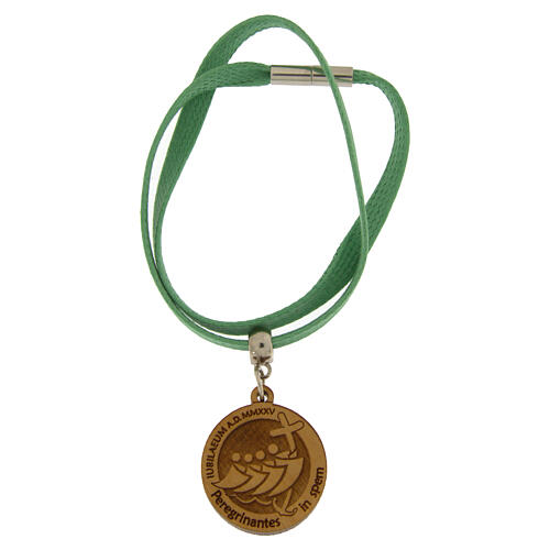 Der Anhänger, 2,7 cm Durchmesser, aus hochwertigem Olivenholz mit präziser Gravur des Jubiläumslogos 2025, ist von dem lateinischen Motto ''Peregrinantes in spem'' begleitet.