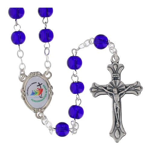 Nachtblauer Rosenkranz 5mm Glas in Schachtel mit offiziellem Jubiläumslogo 2025
