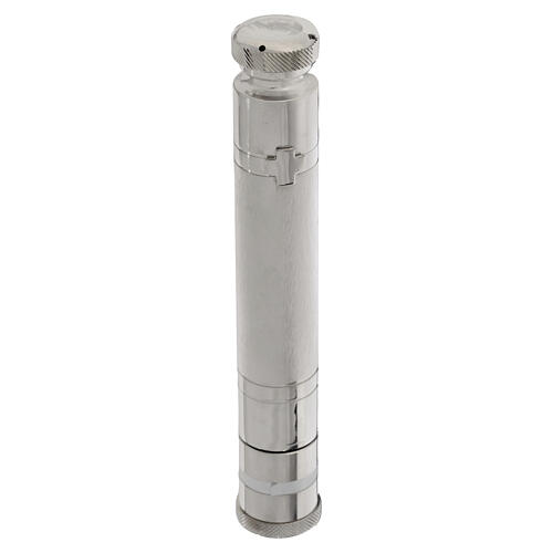 Aspergill mit Gläschen für Öle. Aspergill realisiert aus versilberten Messing mit Gläschen für Öle, mit Schrift INF.