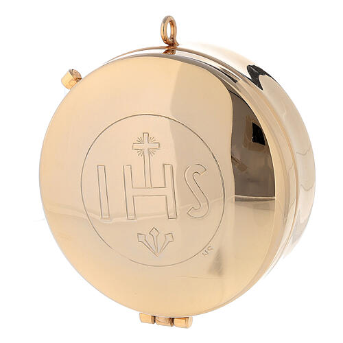 Versehpatene aus garantiertem vergoldetem Messing (24 Karat) fűr Ostia Magna (Große Hostie), deren Deckel auf einer Seite aufklappbar ist.