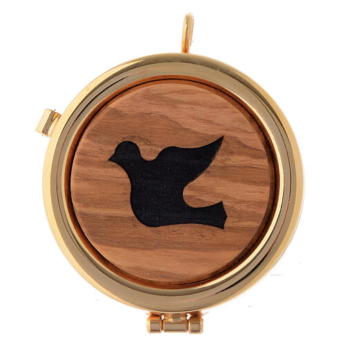 Versehpatene mit Platte aus Olivenbaumholz mit Friedenstaube, Durchmesser von 6 cm