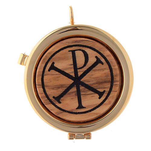 Versehpatene aus Messing in Goldbad mit Platte aus Olivenbaumholz von Assisi, die von einem umbrischen Handwerker hergestellt wurde.