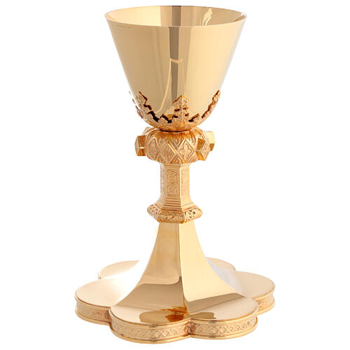 Kelch, gotischer Stil, Material: 925er Silber vergoldet, Hersteller: Molina, Durchmesser: 10 cm.