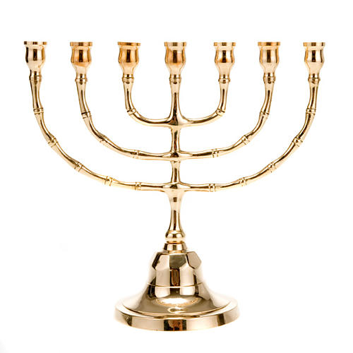 Siebenarmiger Kerzenleuchter aus Messing. Der Kerzenleuchter ist aus Messing realisiert und mit Gravierungen dekoriert. Geeignet für Kerzen mit Durchmesser bis 1cm.