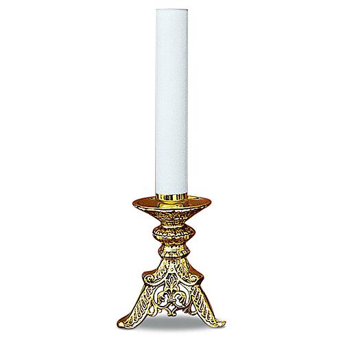 Gothischer Kerzenleuchter aus gegossenem goldfarbenem Messing mit einer Höhe von 50 cm