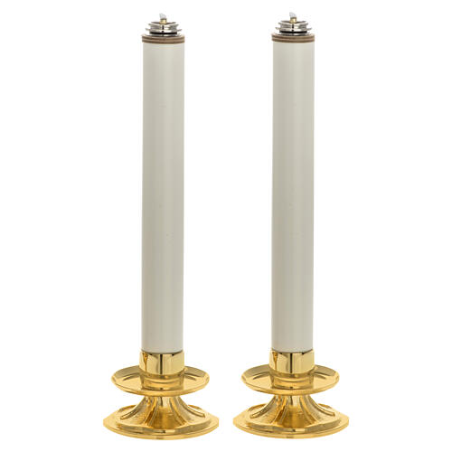 ÜbersetzenJeux de cierges d'autel beaux, sobres, fonctionnels, faciles d'entretien, de rechargement et de transport. Je les ai dans ma caisse-Messe lorsque je me déplace dans une de mes 45 églises!