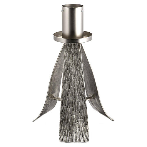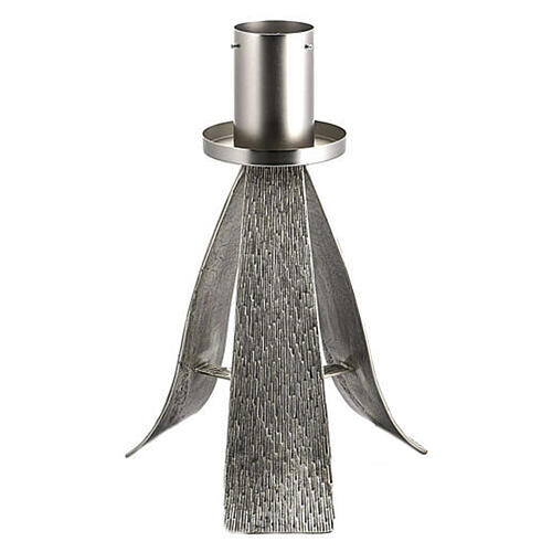Osterkerzenhalter-Basis aus versilberter Gussbronze, mit modernem Design. Für Wachskerzen mit maximalem Durchmesser 8 cm.