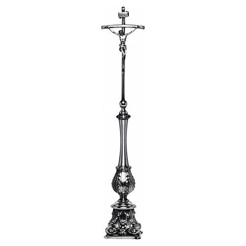 Altarkreuz aus silberfarbenem Metall im barocken Stil mit Akanthusdekor