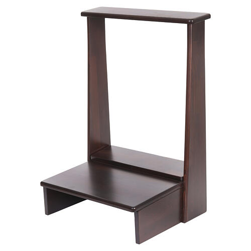 Praktische klappbare Kniebank in nussbaumfarbener Ausführung, gefertigt aus Holz in Italien. Ausgestattet mit einem integrierten Aufbewahrungsfach.