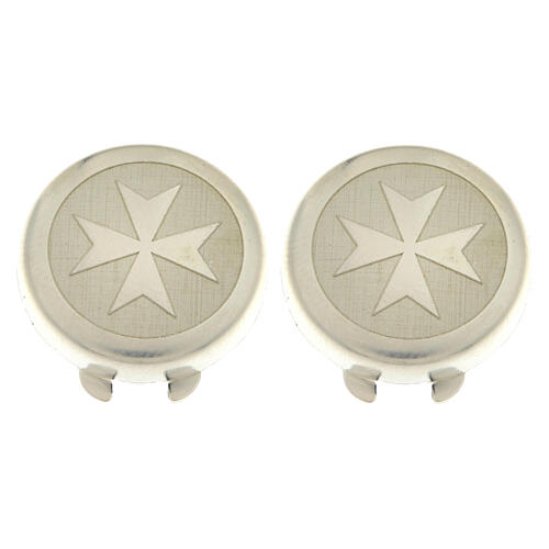 Paar Knopfabdeckungen aus 925er Silber, mit feiner Gravur des Malteserkreuzes.