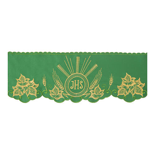 Altartuch-Bordüre JHS mit Ähren, grün, Höhe 15 cm