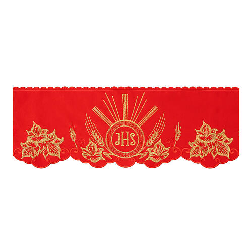 Altartuch-Bordüre JHS mit floralen Motiven, rot, Höhe 15 cm