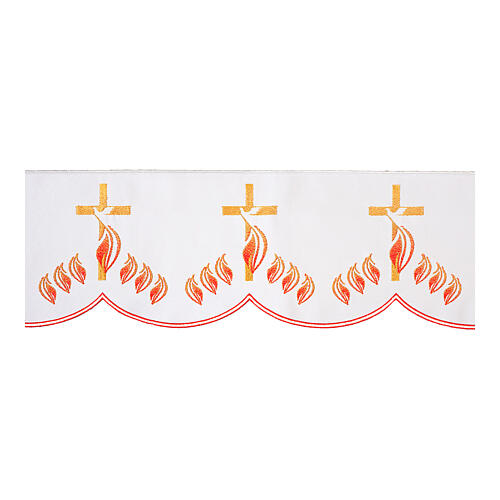 Altartuch-Bordüre mit Kreuz, Taube und Flammen, weiß, Höhe 17 cm