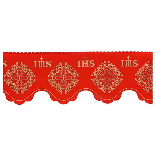 Altartuch-Bordüre mit Kreuz und IHS, rot, Höhe 19 cm