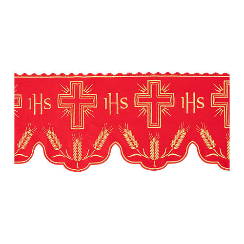 Altartuch-Bordüre mit Kreuze, Ähren und IHS, rot, Höhe 31 cm