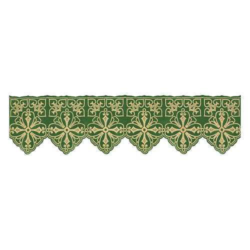 Altartuch-Bordüre mit Kreuzen und floralen Motiven, grün, Höhe 22 cm
