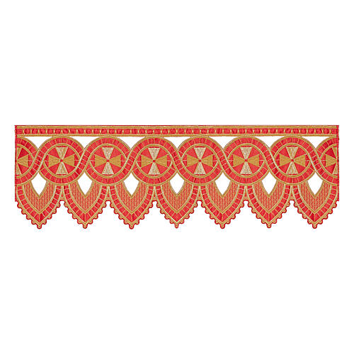 Altartuch-Bordüre mit Kreuzen und geometrischem Muster, rot, Höhe 25 cm