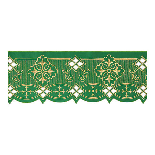Altartuch-Bordüre mit Kreuzen und geometrischen Motiven, grün, Höhe 20 cm