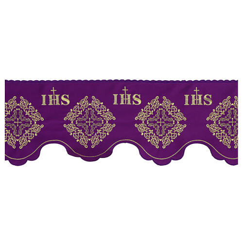 Altartuch-Bordüre mit Kreuzen und IHS, violett, Höhe 19 cm