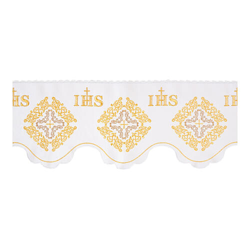 Altartuch-Bordüre mit Kreuzen und IHS, weiß, Höhe 19 cm