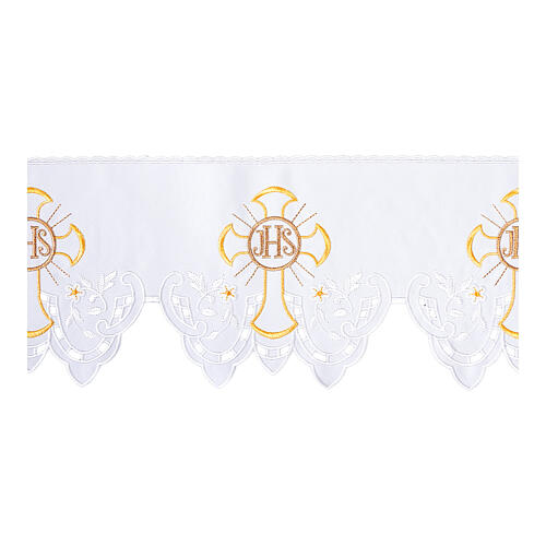 Altartuch-Bordüre mit Kreuzen und JHS, weiß, Höhe 22 cm