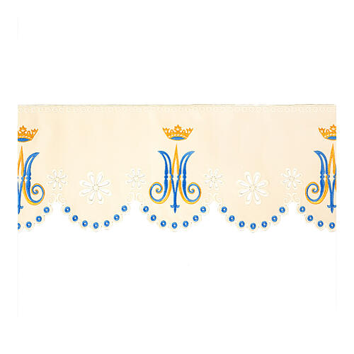 Altartuch-Bordüre mit Marienmonogramm und Blumen, weiß, Höhe 20 cm