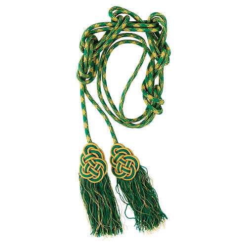 Zweifarbiges Priesterzingulum in Gold und Mintgrün mit Quaste mit flachem Abschluss.
