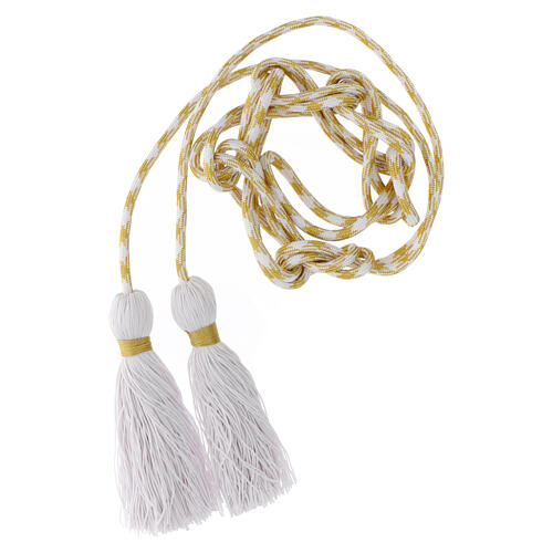 Zweifarbiges Priesterzingulum in Weiß und Gold mit Polipo-Quaste.