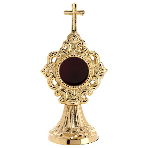 Reliquiar aus goldfarbenem Messing mit schlichter Basis – Höhe 17 cm
