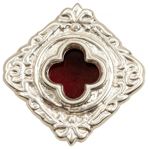 Reliquiar aus silberfarbenem Messing mit Kreuzdekor – Ø 6 cm