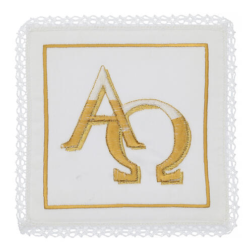 Kelchwäsche-Set, Alpha und Omega als Stickerei als Stickerei, aus Seide, Baumwolle und Viskose – 4-teilig