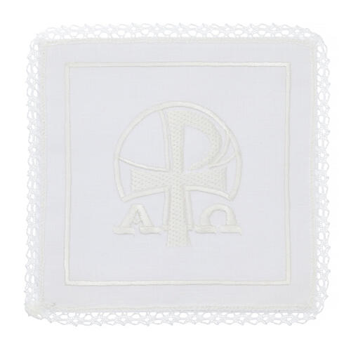 Kelchwäsche-Set, Aquileiakreuz als Stickerei – 4-teilig, 80 % Leinen, 10 % Baumwolle, 10 % Viskose