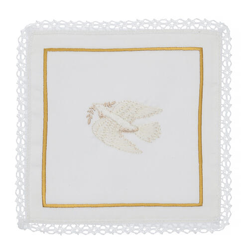 Kelchwäsche-Set, Friedenstaube als Stickerei, aus Seide, Baumwolle und Viskose – 4-teilig