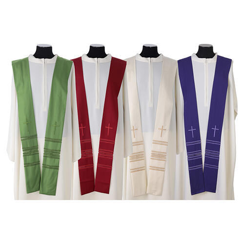 Stola mit Kreuz und Gigliuccio Stickerei aus Wolle. Die Stola wird aus Wolle realisiert und mit einem Kreuz und Gigliuccio Stickerei dekoriert.
