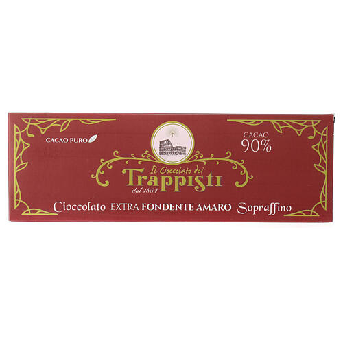 Tafel von extra dunkle Bitterschokolade mit 90% Kakao, 150 g. Dieser extra dunkle Bitterschokolade wird nach der Originalrezeptur der Trappistenmönche hergestellt, wobei ausschließlich sorgfältig ausgewählte und hochwertige Rohstoffe verwendet werden. Sie wird im römischen Kloster Frattocchie hergestellt, dessen Geschichte bis ins Jahr 1880 zurückreicht.