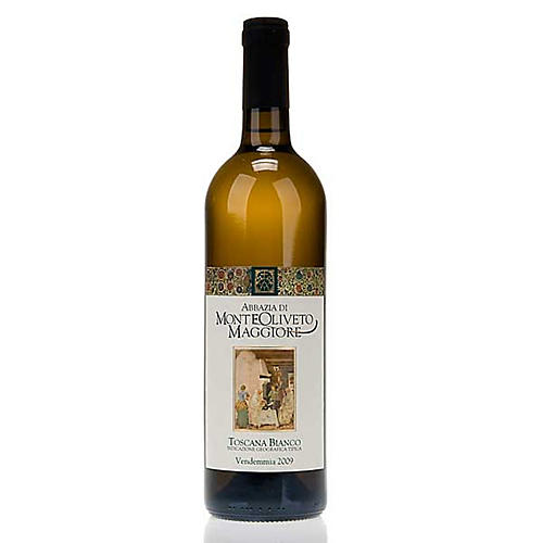 Weiss Wein aus Toscana IGT; es ist von dem 2009 und kommt aus den Weinberger der Abtei des Berges "Monte Oliveto Maggiore" in der Naehe von Siena. Die Moenche des Benediktinerkongregation kultivieren die Oelbaumen und auch die Vermentino- und Chardonnay-Weinberger; dieses Wein kommt aus hier. Alkoholgehalt 13%.