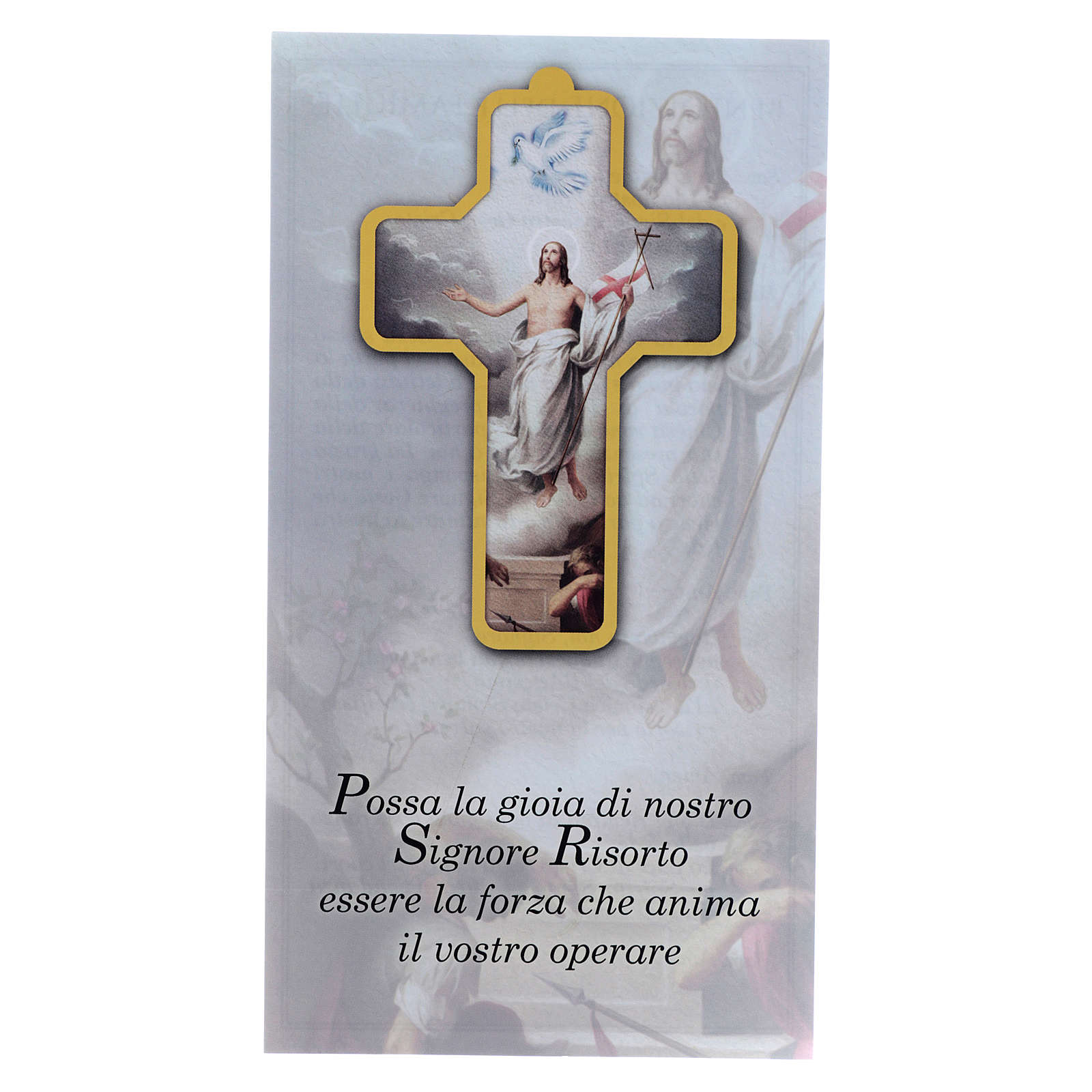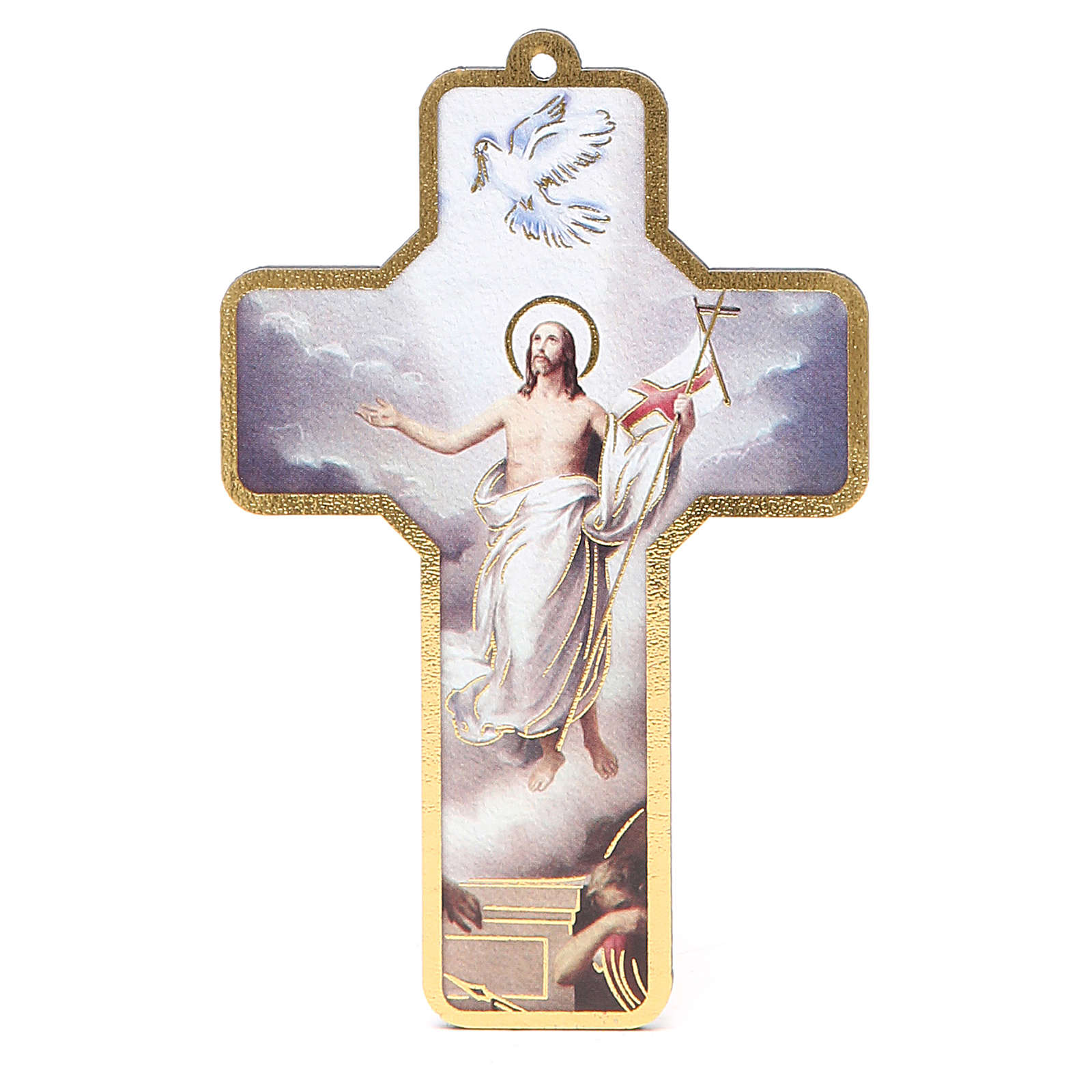 Familiensegnungen: PVC Kreuz mit Auferstehung. Kreuz aus PVC mit Bild der Wiederauferstehung 13x8.5cm.