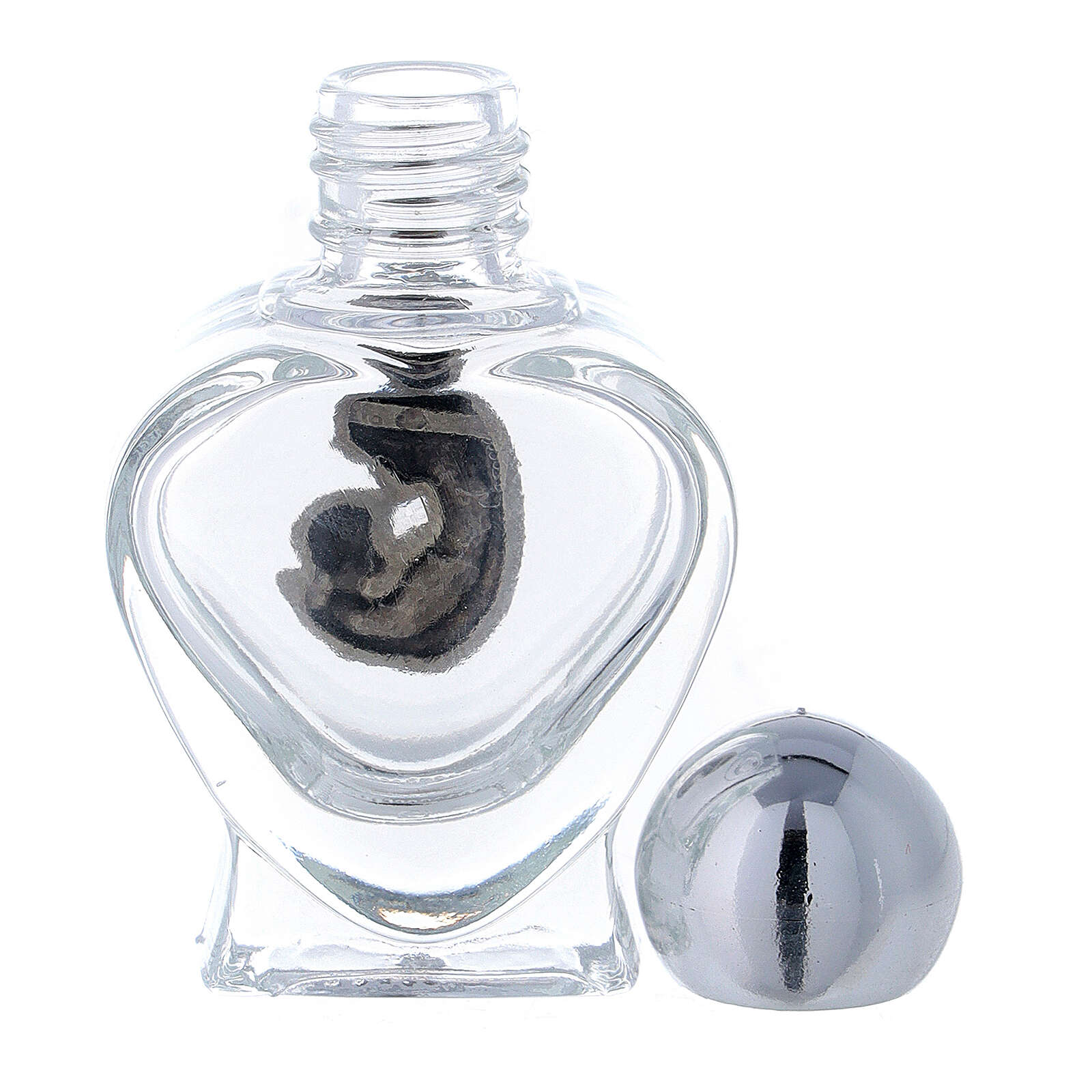 Weihwasserfläschchen herzformig 10ml aus Glas Gottesmutter mit Kind (Packung 50St)
