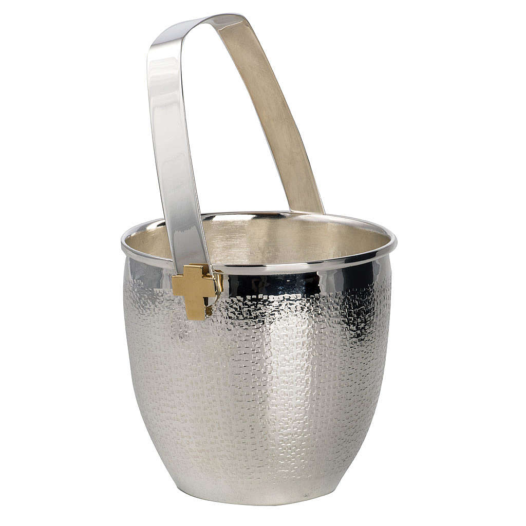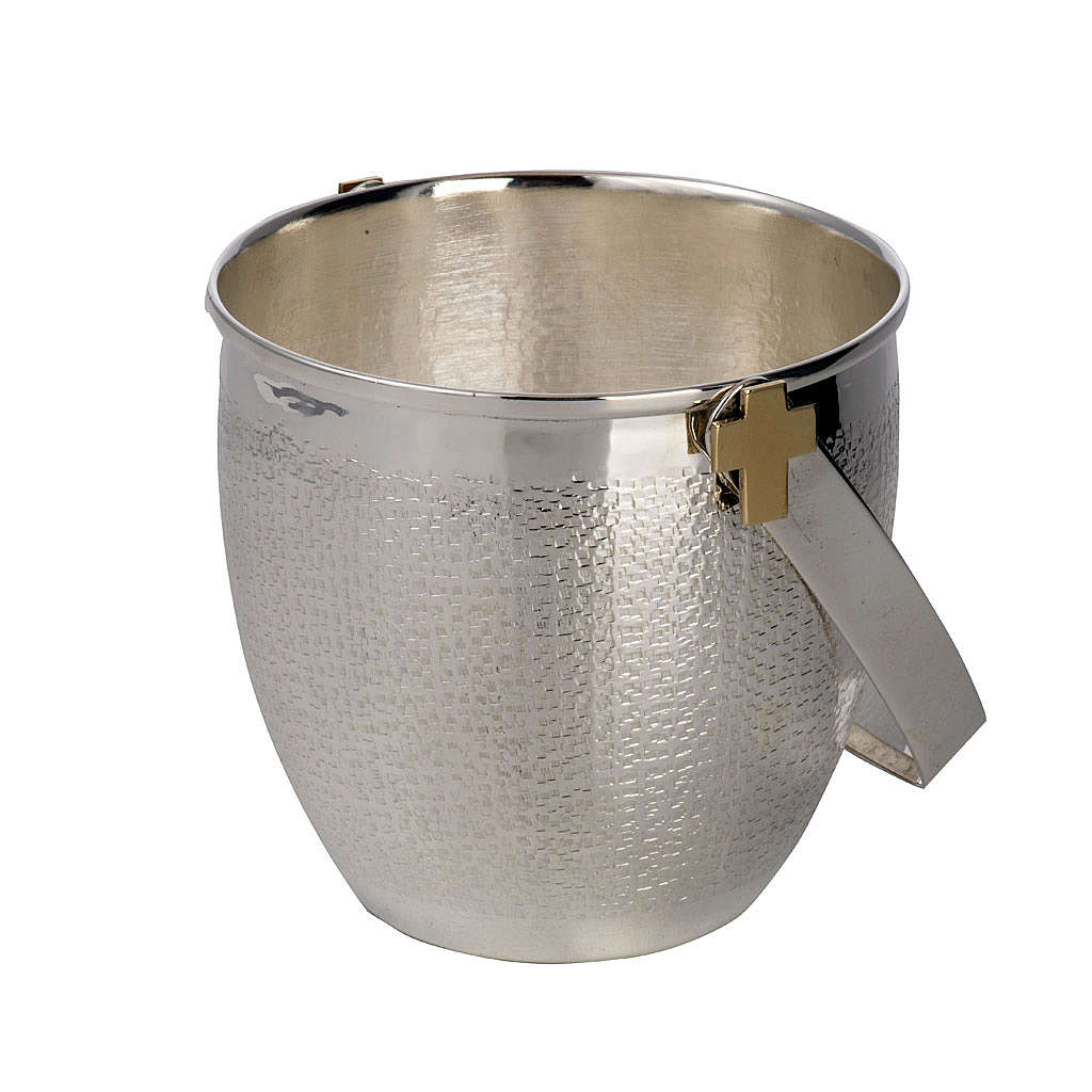 Weihwasserkessel Mod. Sant'Anselmo. Weihwasserkessel realisiert aus versilberten Metall und verfeinert mit zwei vergoldeten Kreuzen.