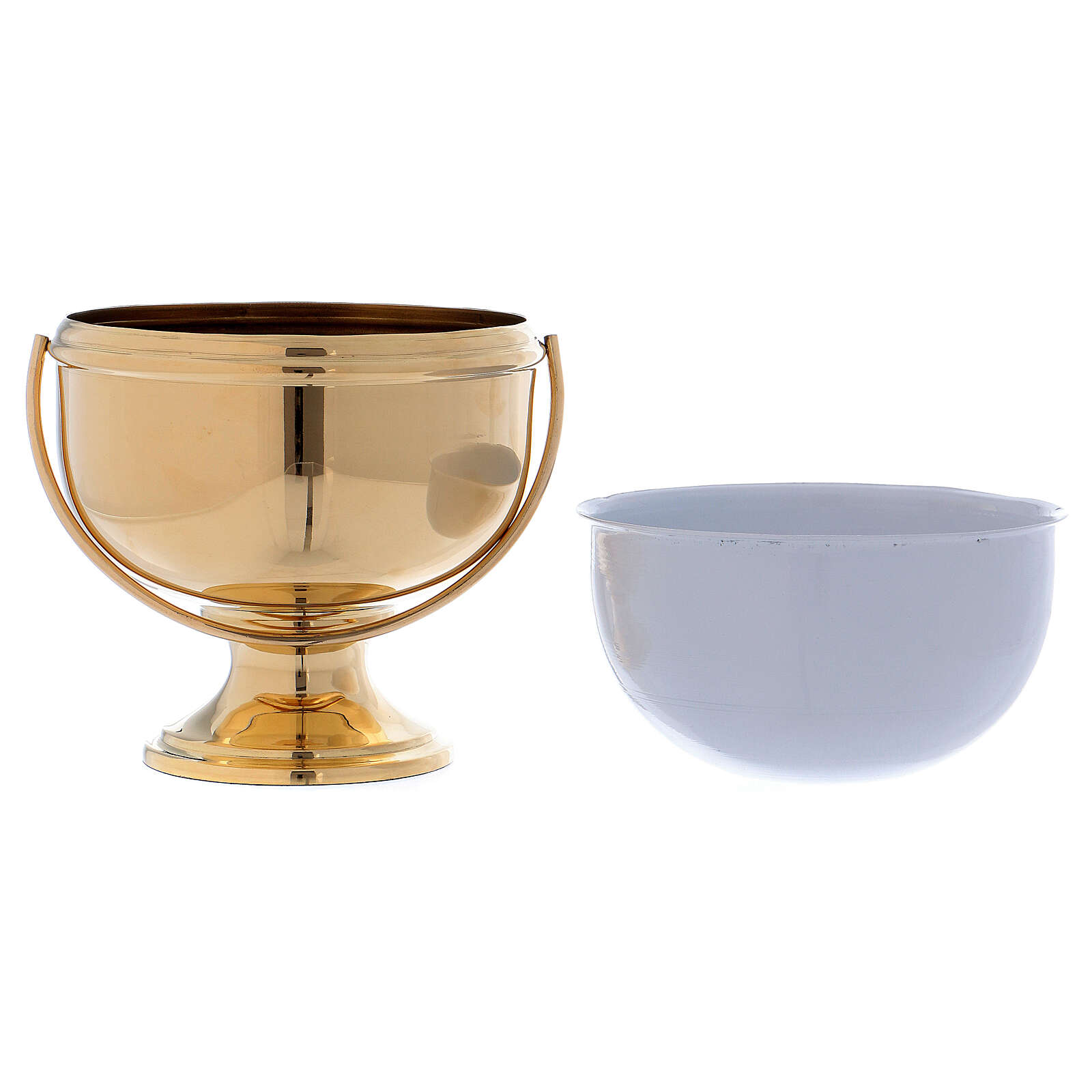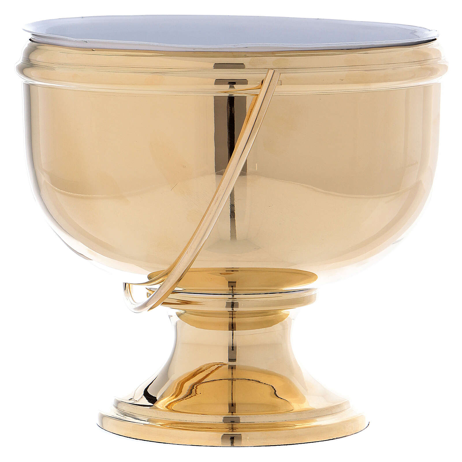 Weihwasserkessel vergoldeten Messing mit ausziehbaren Innenseite. Weihwasserkessel realisiert aus vergoldeten Messing und verfeinert mit einem Handgriff. Die Inneseite ist aus weissen Stahl und ausziehbare.