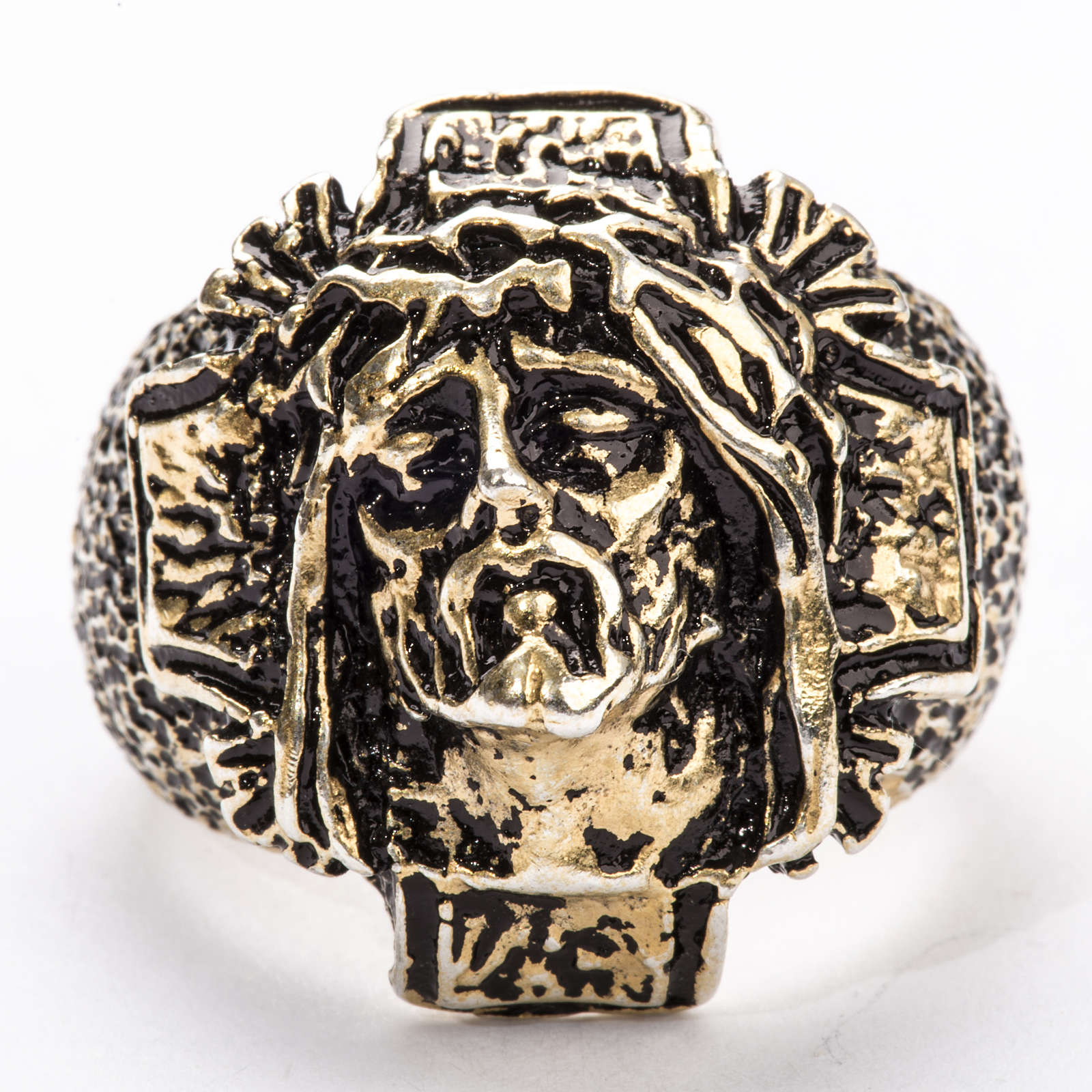 Bischofsring Silber 925 Gesicht Christi. Der Ring ist aus Silber 925 mit bronzefarbigen Finish realisiert, und hat das Gesicht Christi als Dekoration.