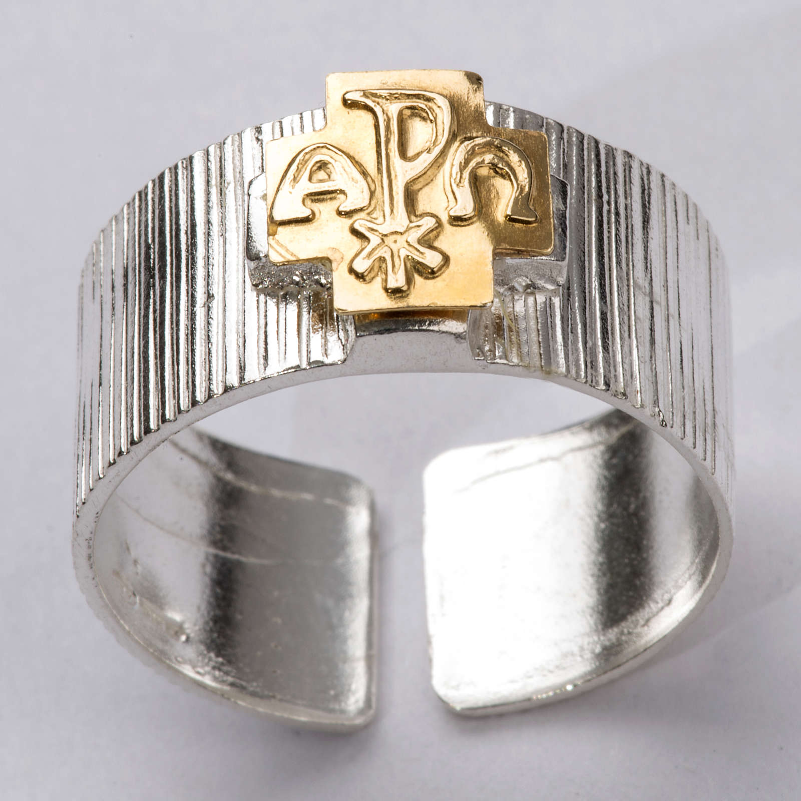 Bischofsring Silber Alpha Omega und Chi-Rho