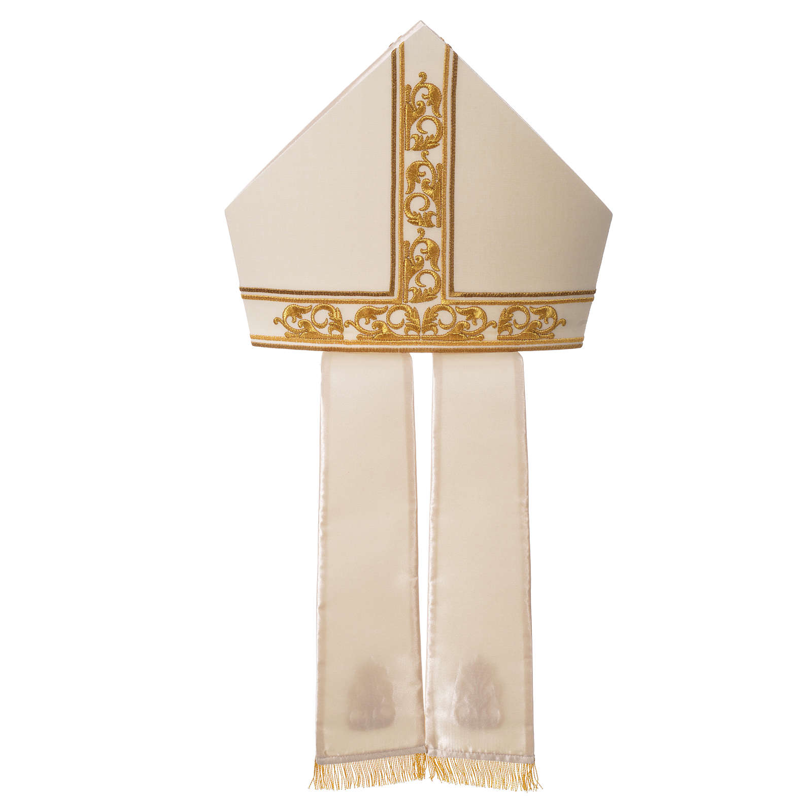 Maschinengenäht Mitra aus Wolle. Die Maße beziehen sich auf jene der Kopf. Verfügbar (auf Wunsch) in den 4 liturgischen Farben.