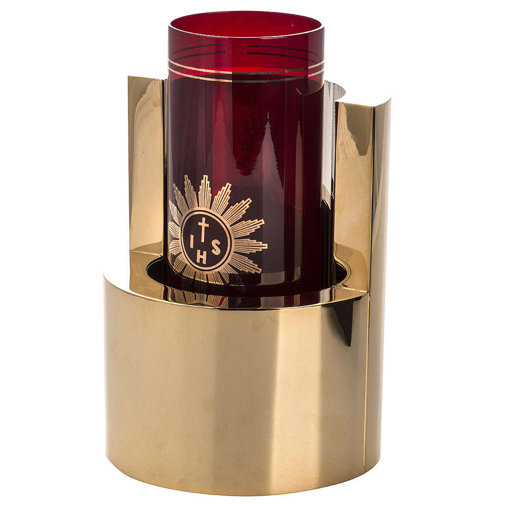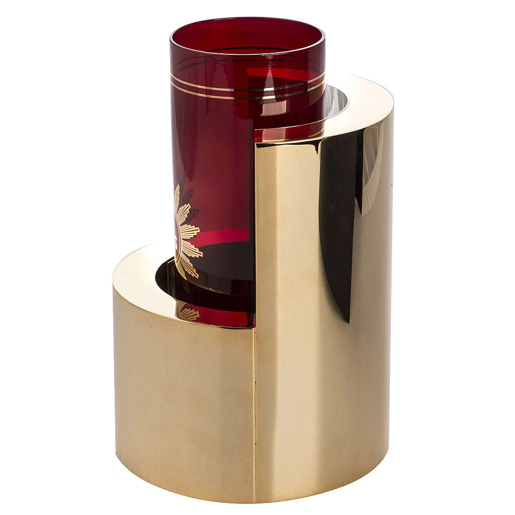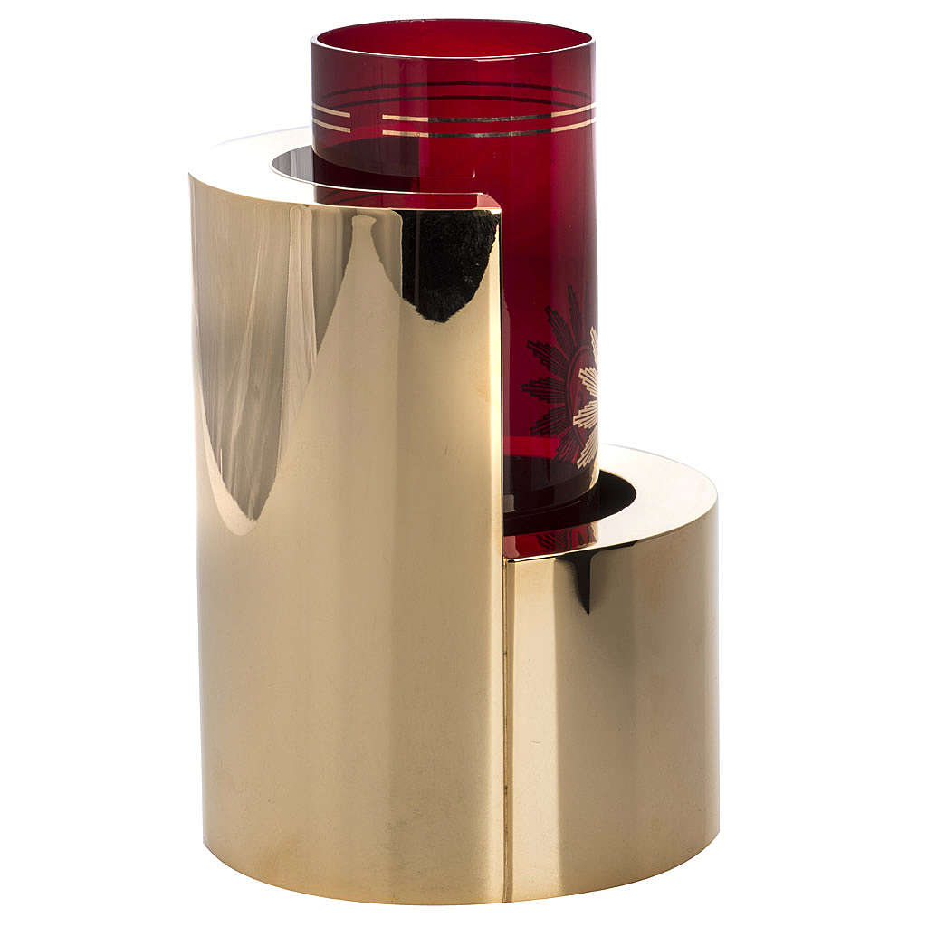 Ewiges Licht Mod. Lumen. Die Lampe ist aus Messing mit mattierten Außenseiten und glänzenden Fläche neben dem Glas, Handwerk Produkt. Diese Lampe ist geeignet für Kirchen mit einer modernen Ausstattung.