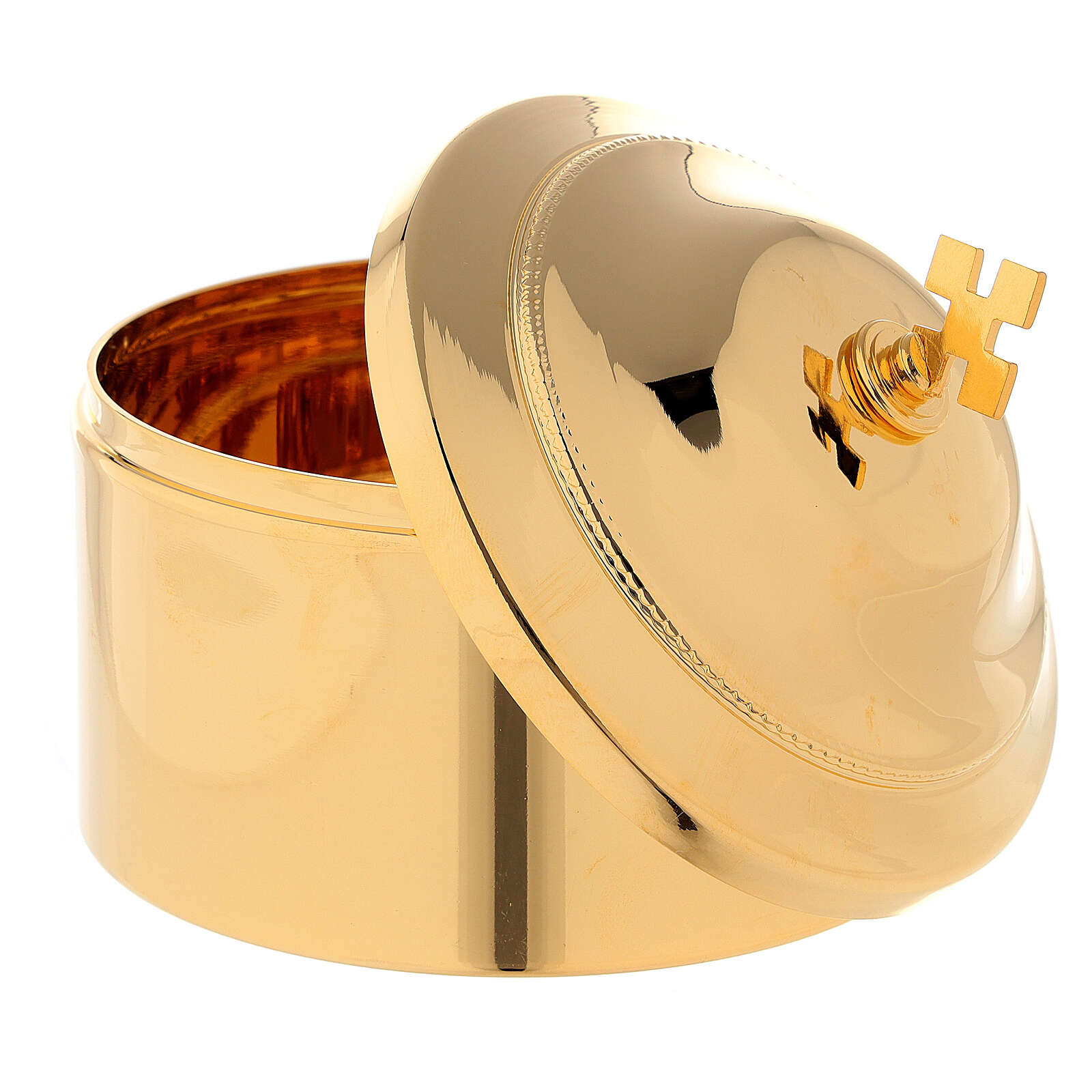 Vergoldete Metalldose für Hostien mit Deckel. Es kann 30 Hostien enthalten.