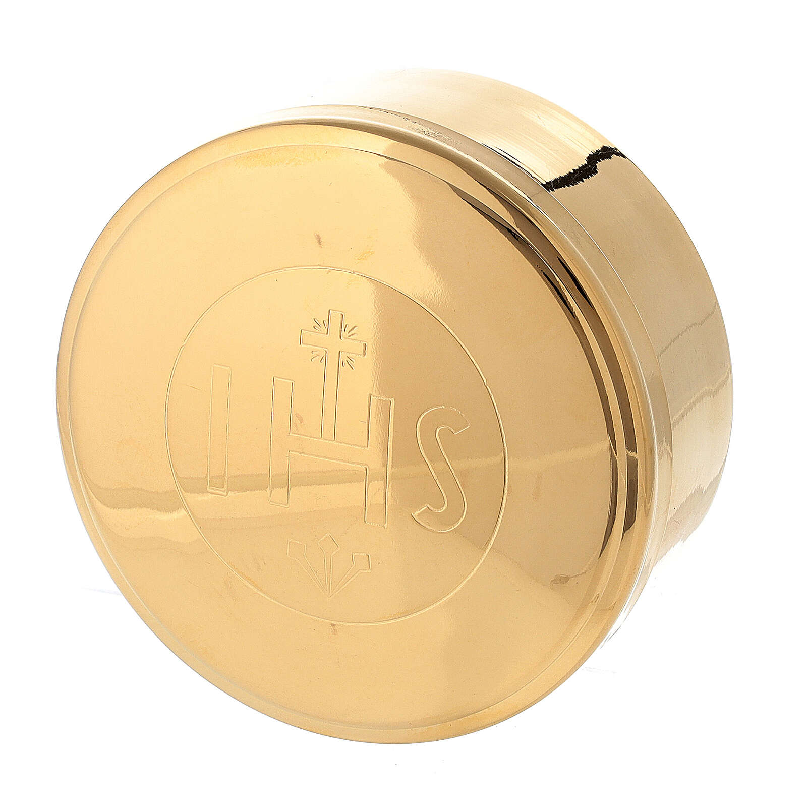 Hostiendose aus vergoldetem Messing hoch IHS.