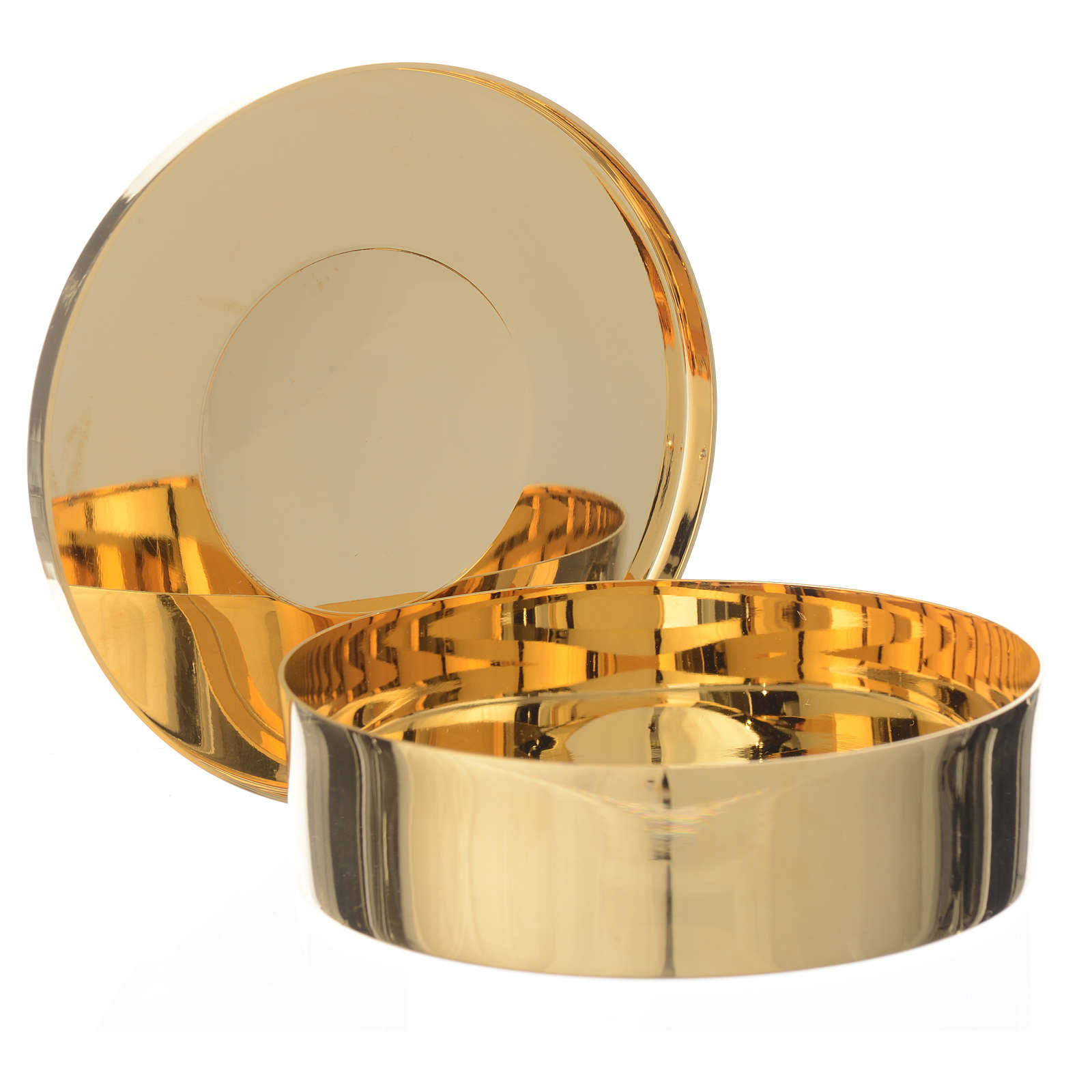 Hostiendose Messing IHS Gravierung 9cm. Hostiendose realisiert aus vergoldeten Messing und graviert mit dem Schrift IHS.